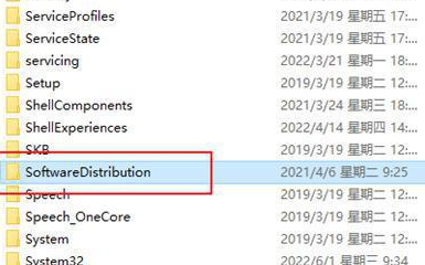 4、将c盘重命名C:windowsSoftwareDistribution文件夹为SDfolder。