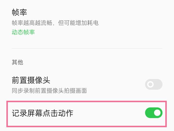 3、第三步:将【记录屏幕点击动作】关闭就可以了。
