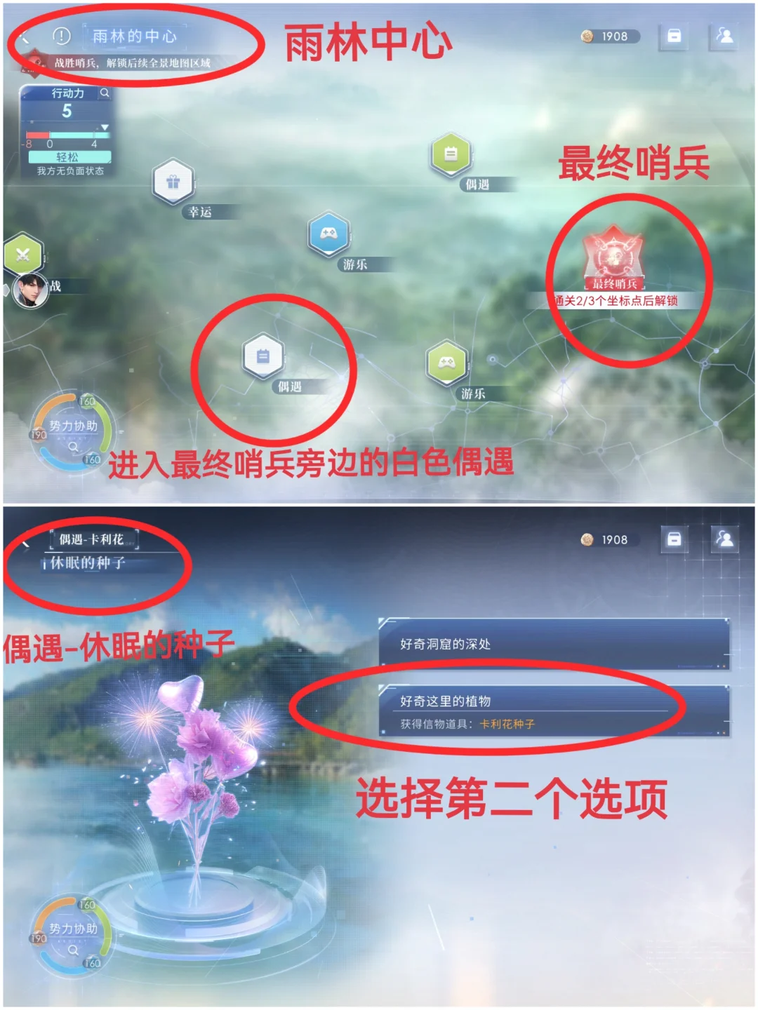 卡利花:(均选择进入雨林的中心)