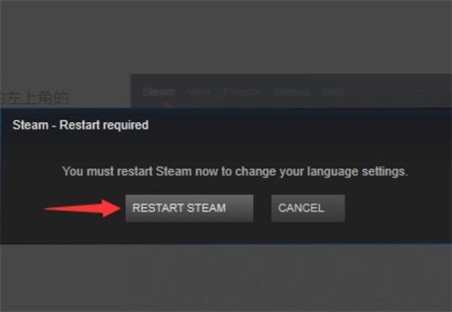 6、在弹出的界面点击RESTART STEAM选项。