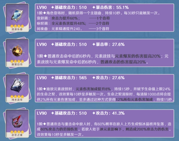 金流监督>图莱杜拉>流浪乐章2音符>流浪乐章1音符>四风原典>天空之卷>尘世之锁>万世大典>神乐之真意>纯水流华>匣里日月>嘟嘟可>忍冬之果>昭心