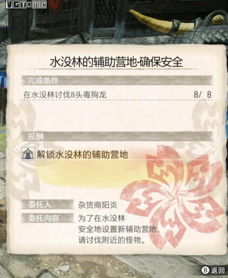 解锁条件:在水没林讨伐 8 头毒狗龙。