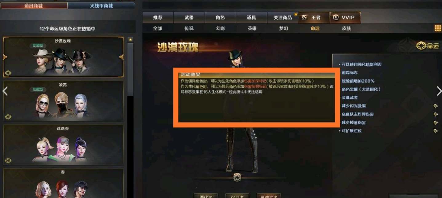追踪标志:沙漠玫瑰角色自带,效果是标记敌方进行幽灵增伤和人类减伤。