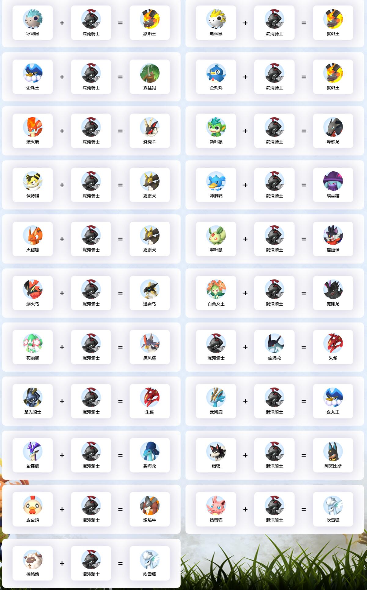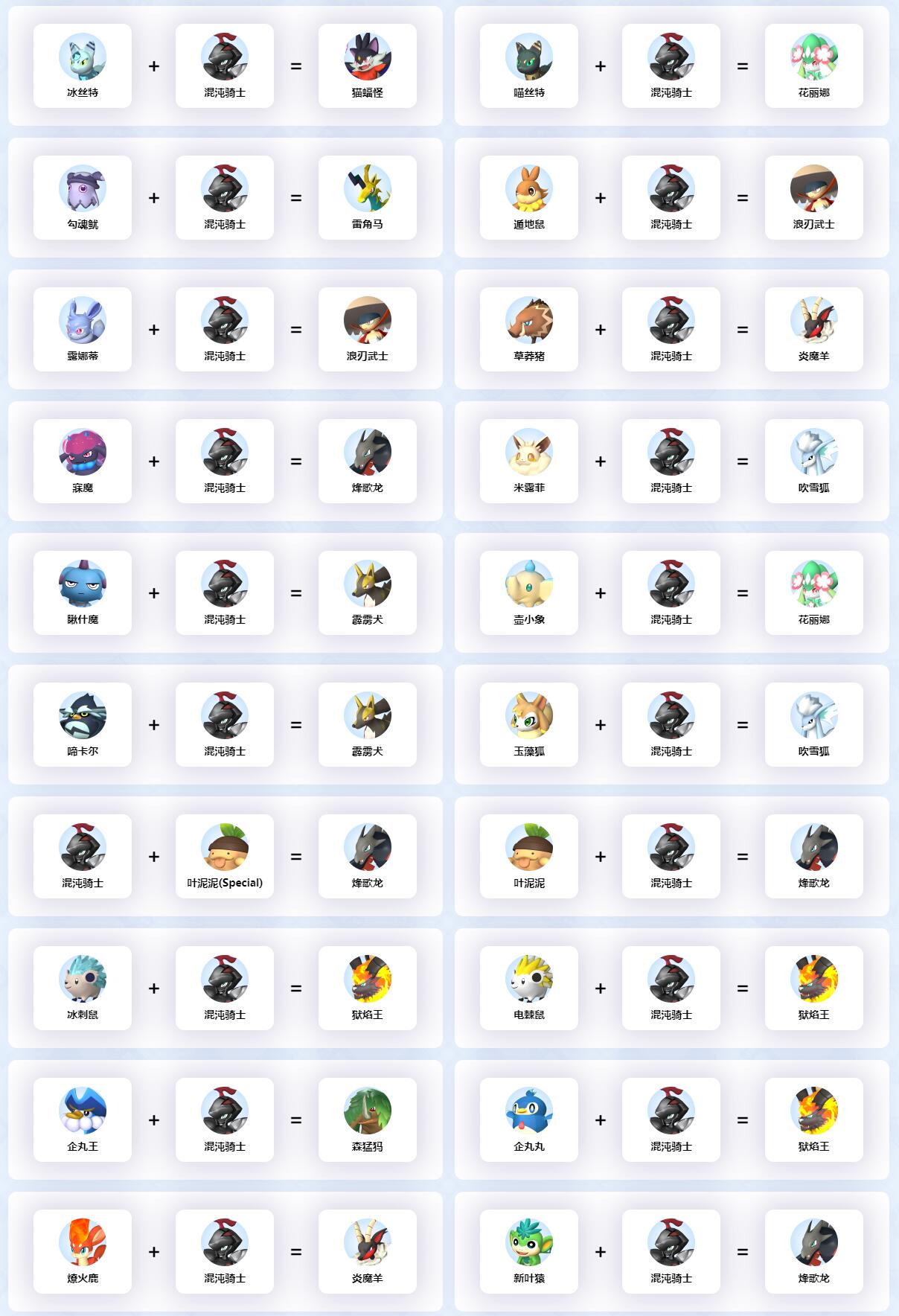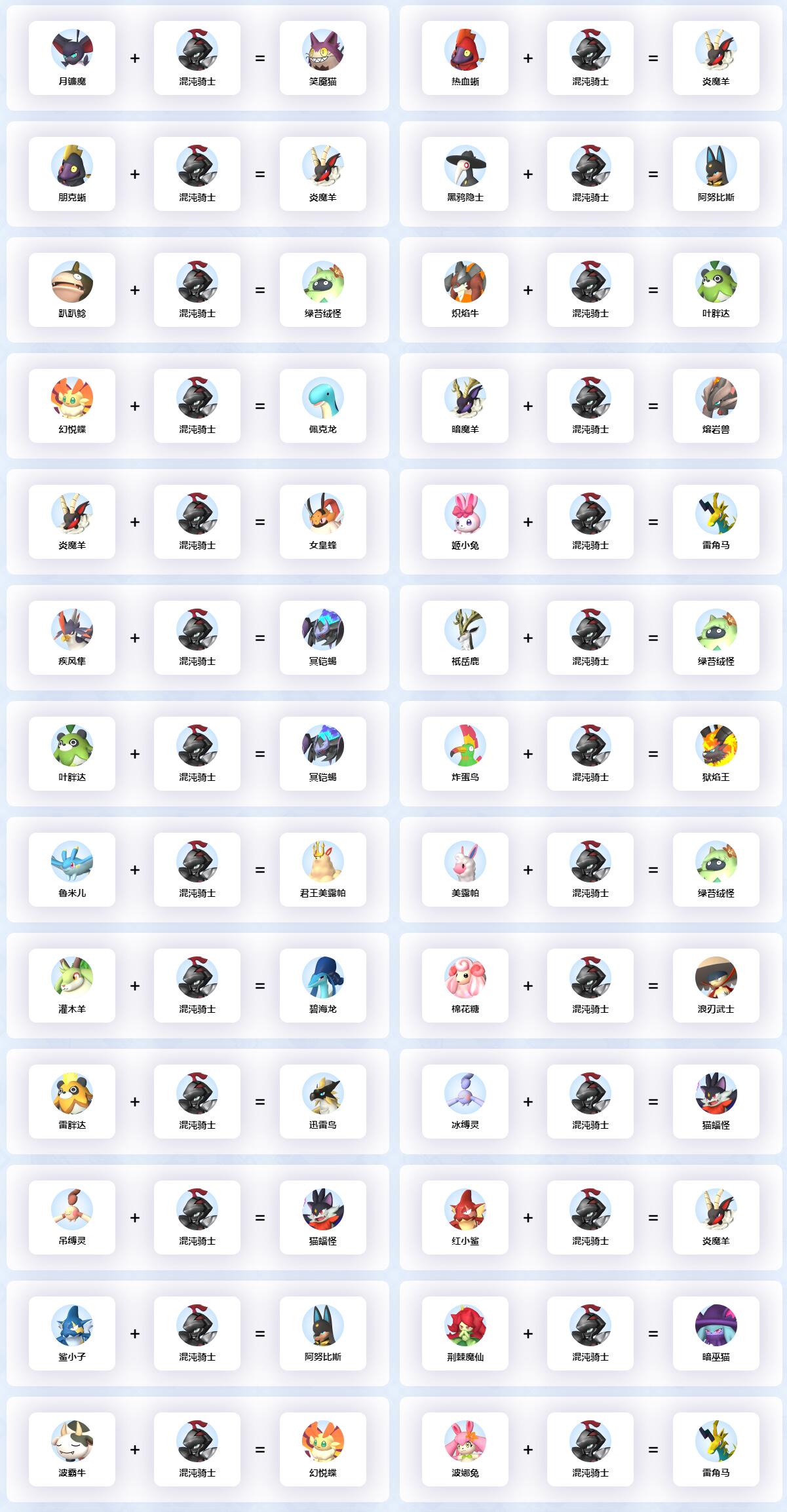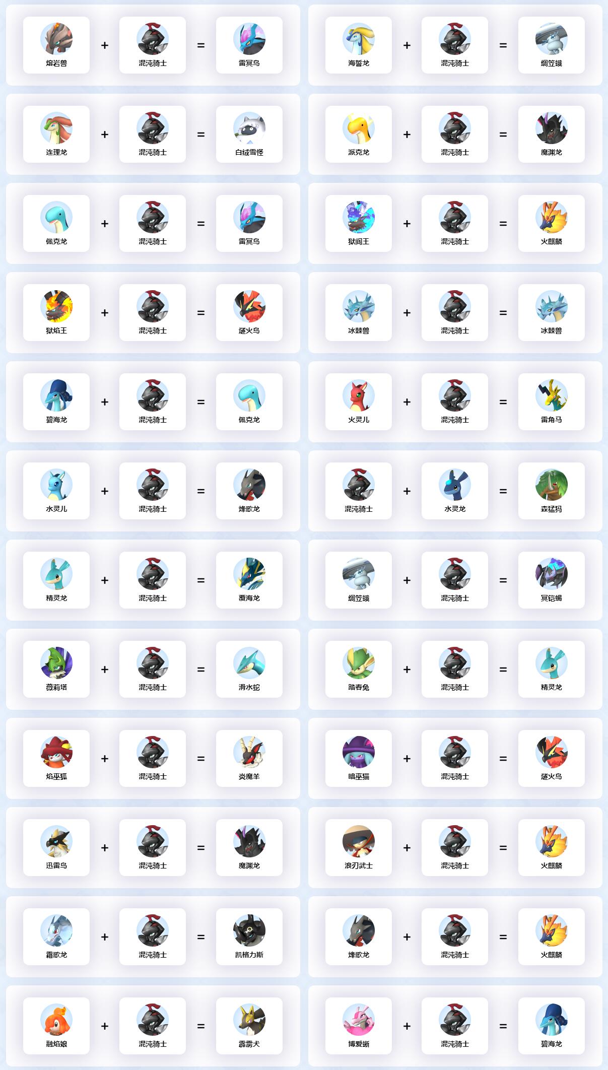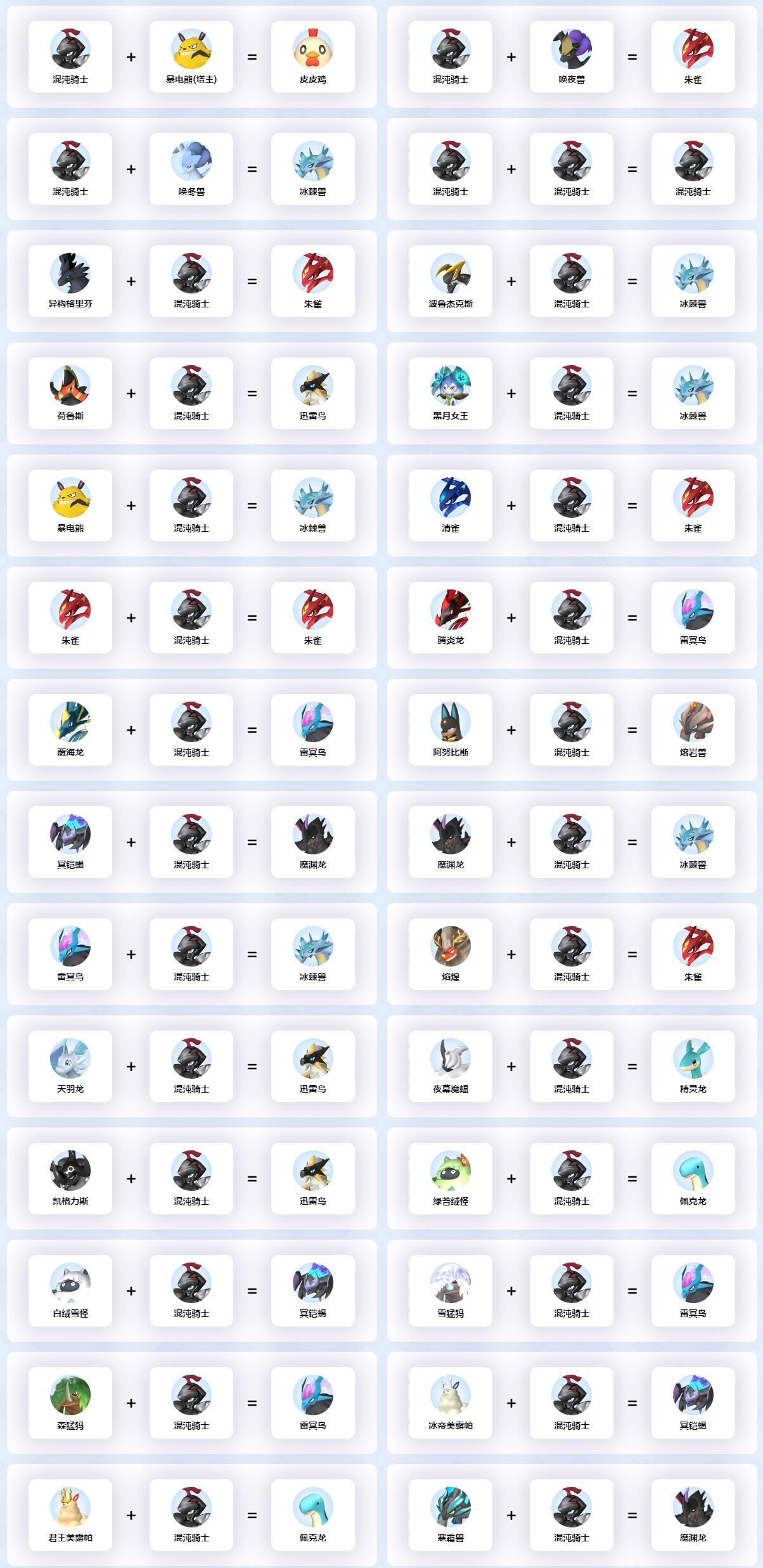 以上就是混沌骑士配种公式大全一览的所有的内容了,给大家提供了混沌骑士的所有的配种公式,希望可以帮助到大家。