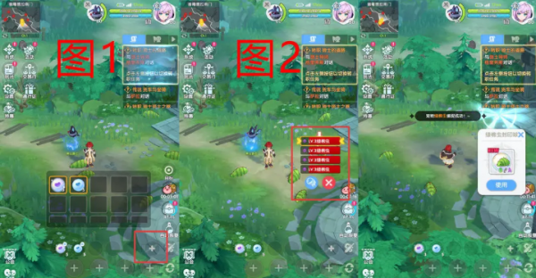 如下图2红框所示,在目标宠物附近点击宠物球,界面右侧会显示宠物名称。选中任意宠物名称,点击蓝色按钮即可进行抓取(PS:抓取并非100%成功,有一定失败概率)。