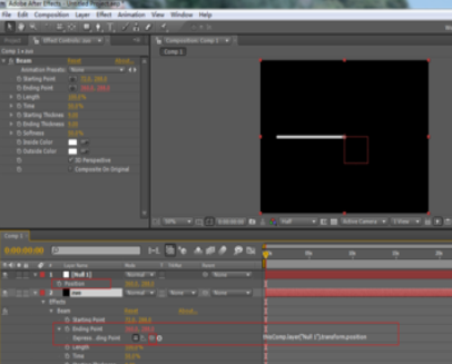 新建个合成,然后新建固态层,并给固态层,添加beam(光束)滤镜。这个滤镜就是靠两个端点组成的直线,调整两个端点的位置就能控制直线的长短。调整里面的长度、宽度和颜色等参数,我这里用的是白色线条来说明的。